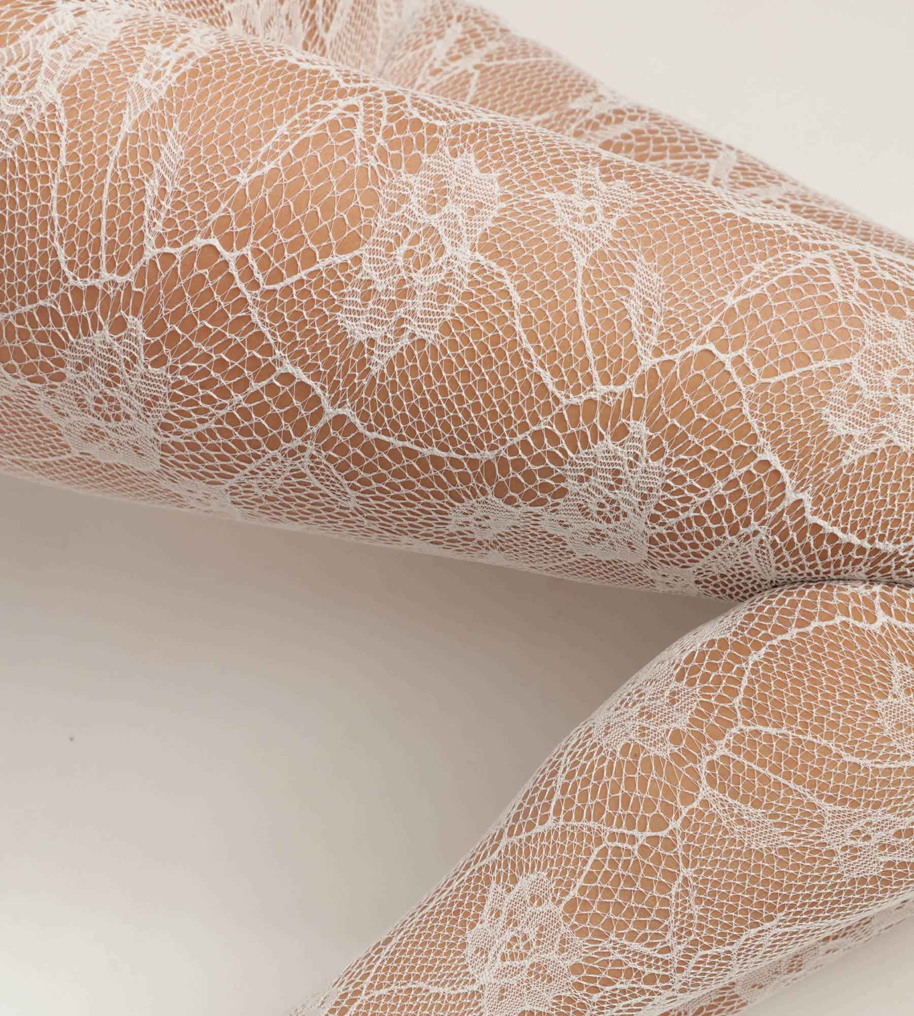 Finish off your looks with romance thanks to the Dim Style White women’s tights in fishnet and floral lace!