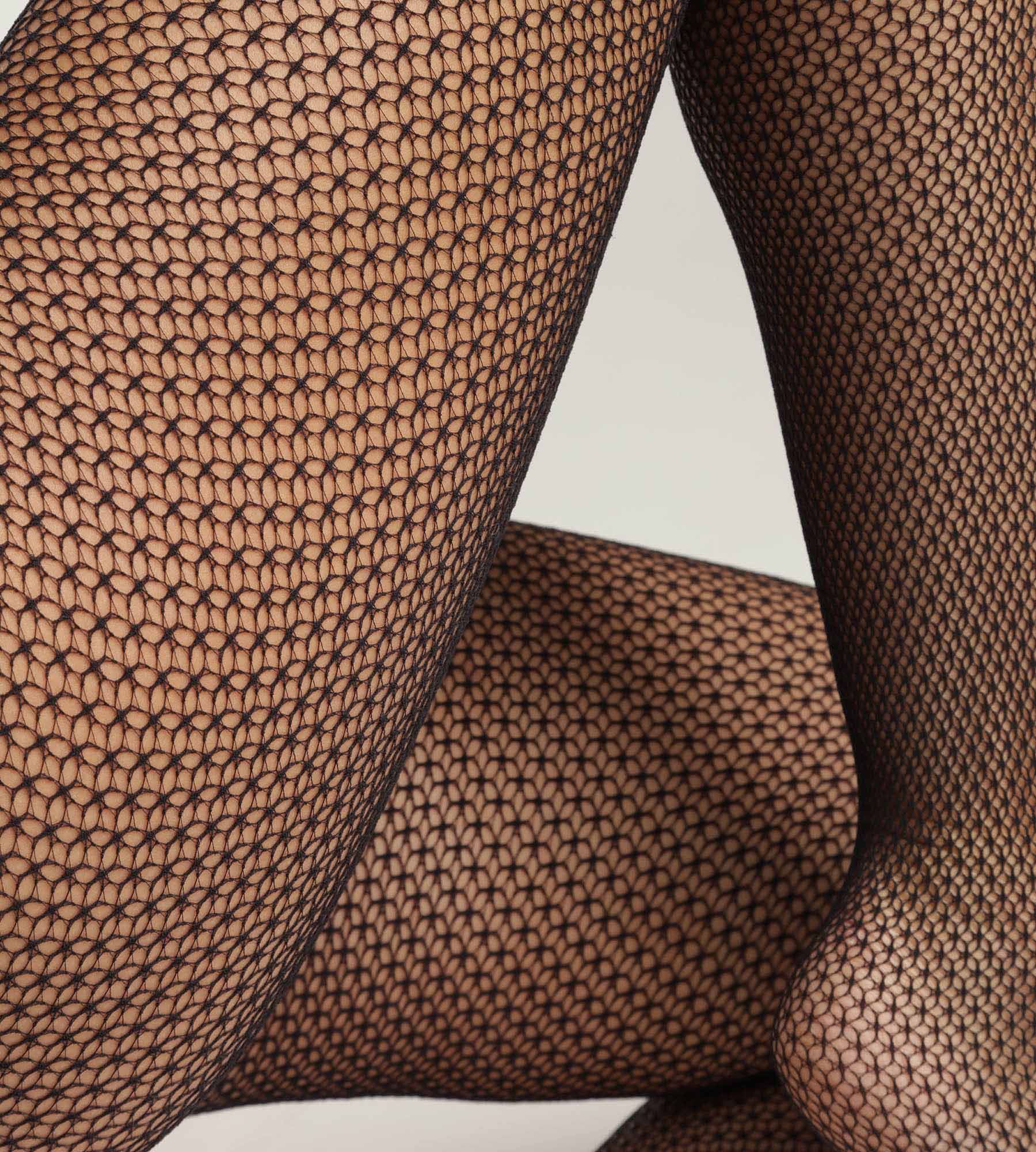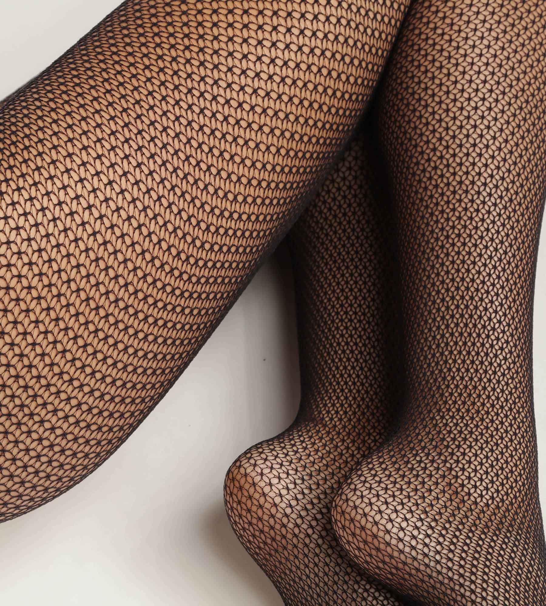 Show off your graphic style with Dim Style tights in black geometric lace!
