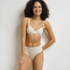 Crave for the light stripes and refined transparency of the Beige Macadamia Dim x Ines de La Fressange high-waisted panties.