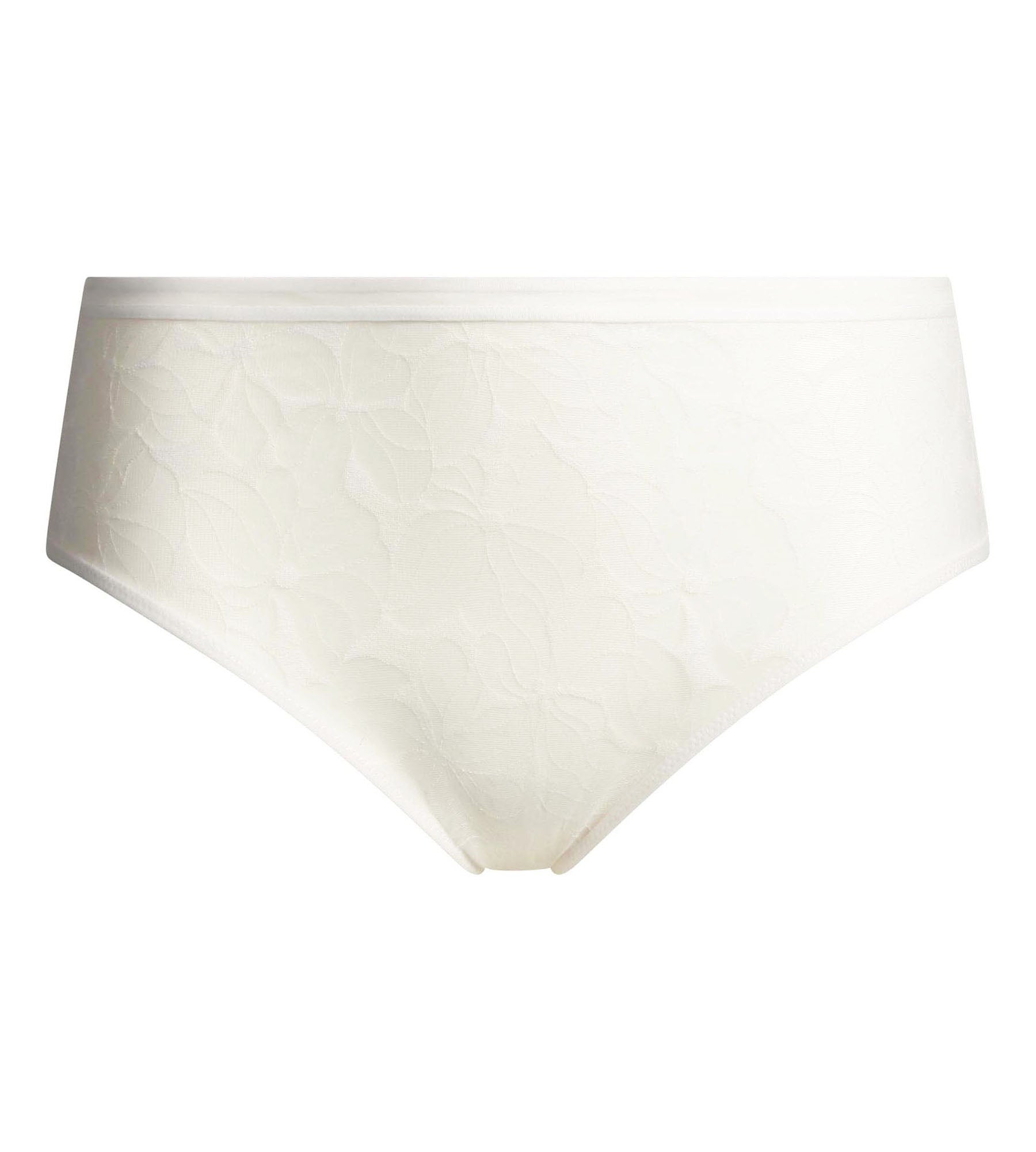 This white high-waisted panty from the Dim Bloom range focuses on simplicity and efficiency. Its large floral lace pattern creates a beautiful visual effect while remaining lightweight. The waistband, lined with a fine plastic, guarantees good support without compression. Thanks to its wrap-around cut, the Dim Bloom high waist briefs smooth the silhouette and offer real ease on a daily basis.