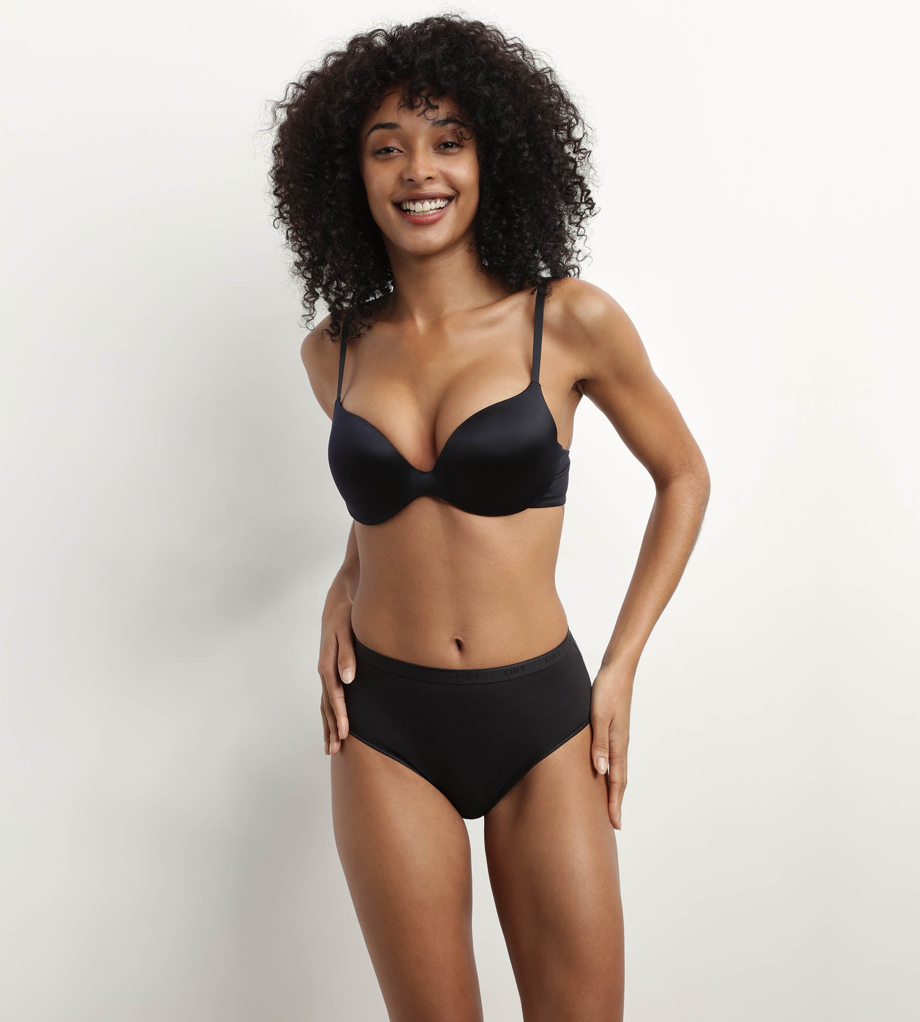 Match the Dim Comfort Collection underwired push-up bra with our matching black panties or women’s thong!