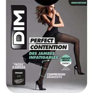 *Dim Perfect Contention helps relieve and prevent the symptoms of heavy and painful legs. This class 1 medical device is a regulated health product which, under this regulation, bears the CE marking. (Read the instructions carefully) – August 2019.