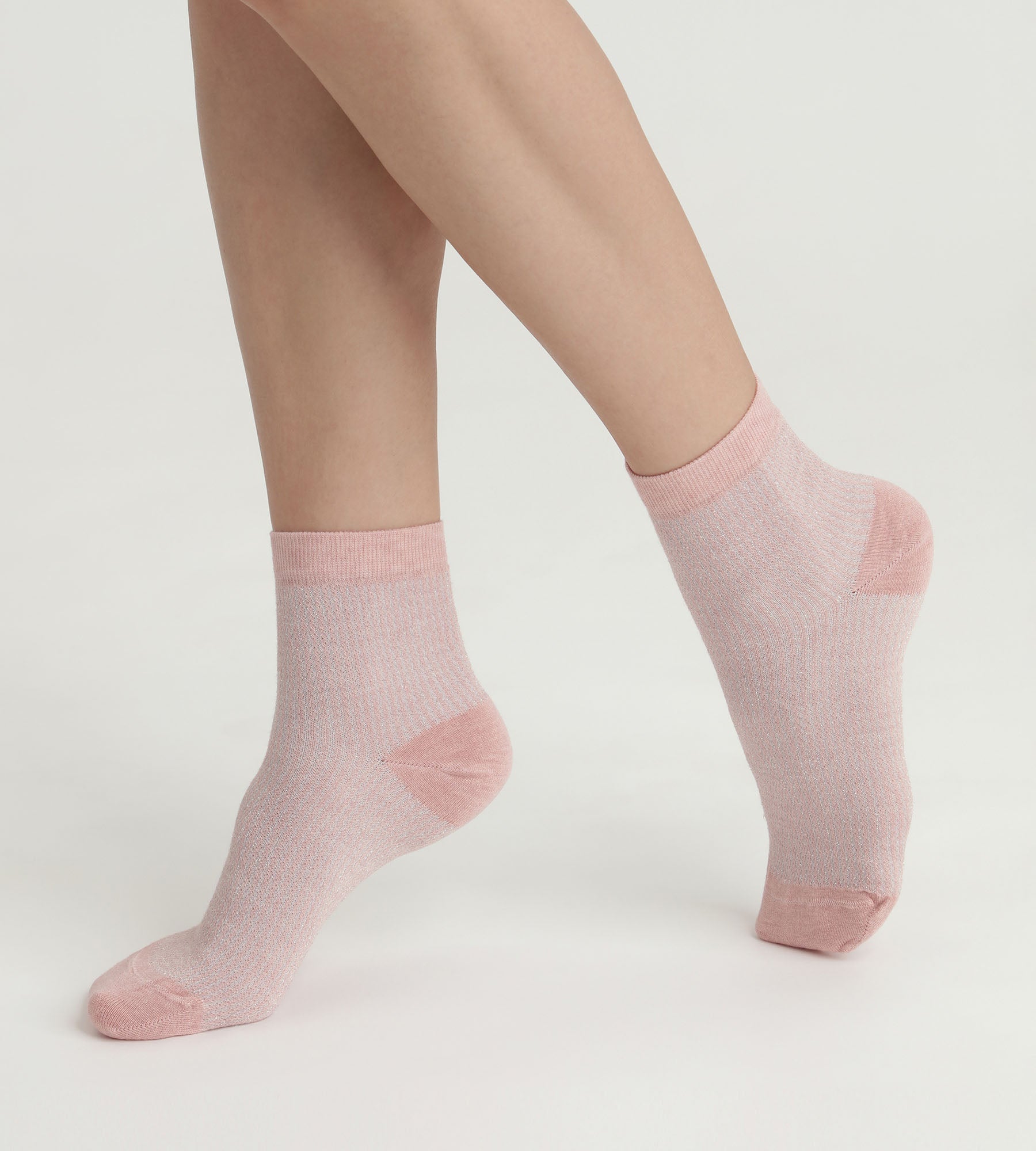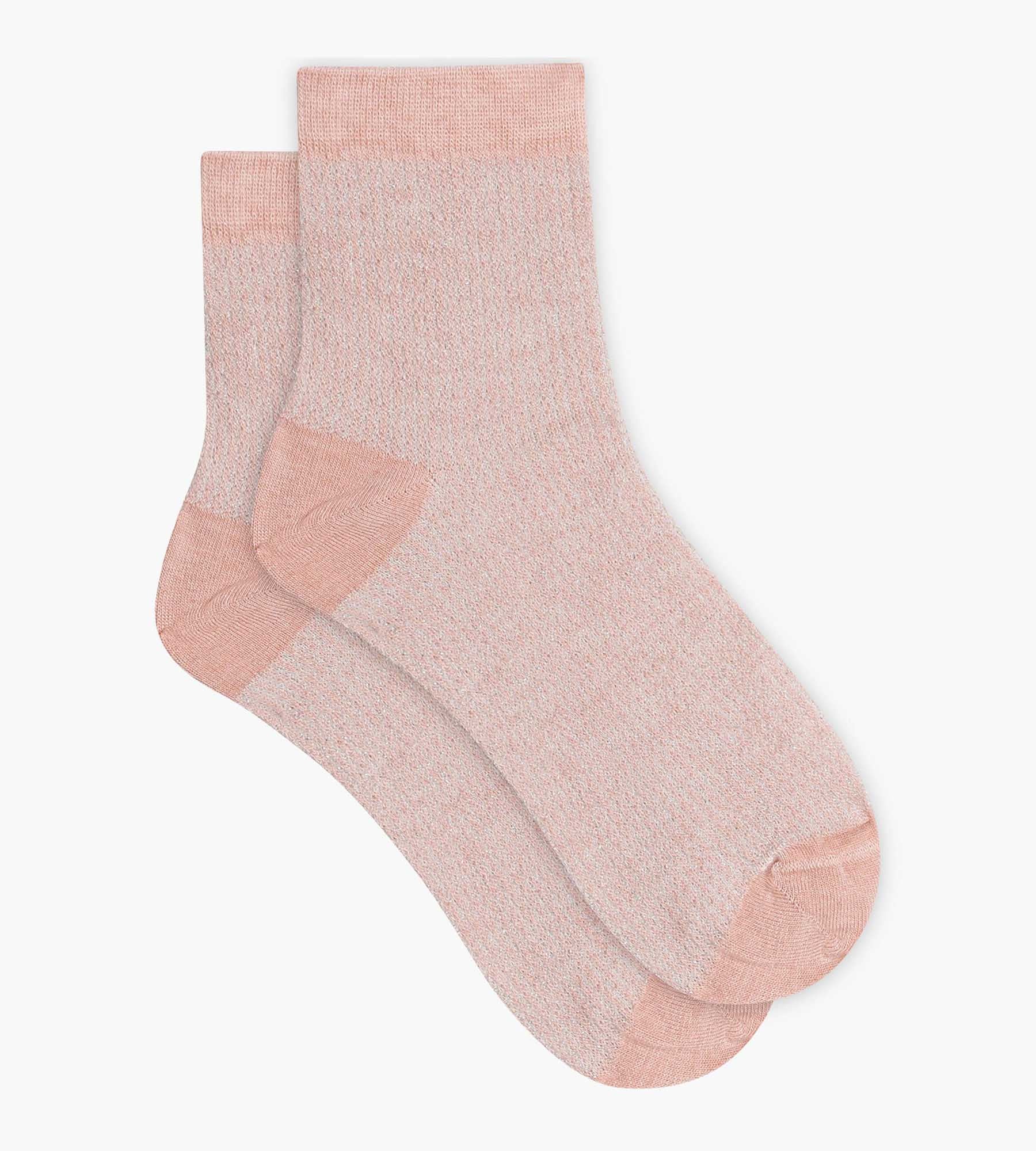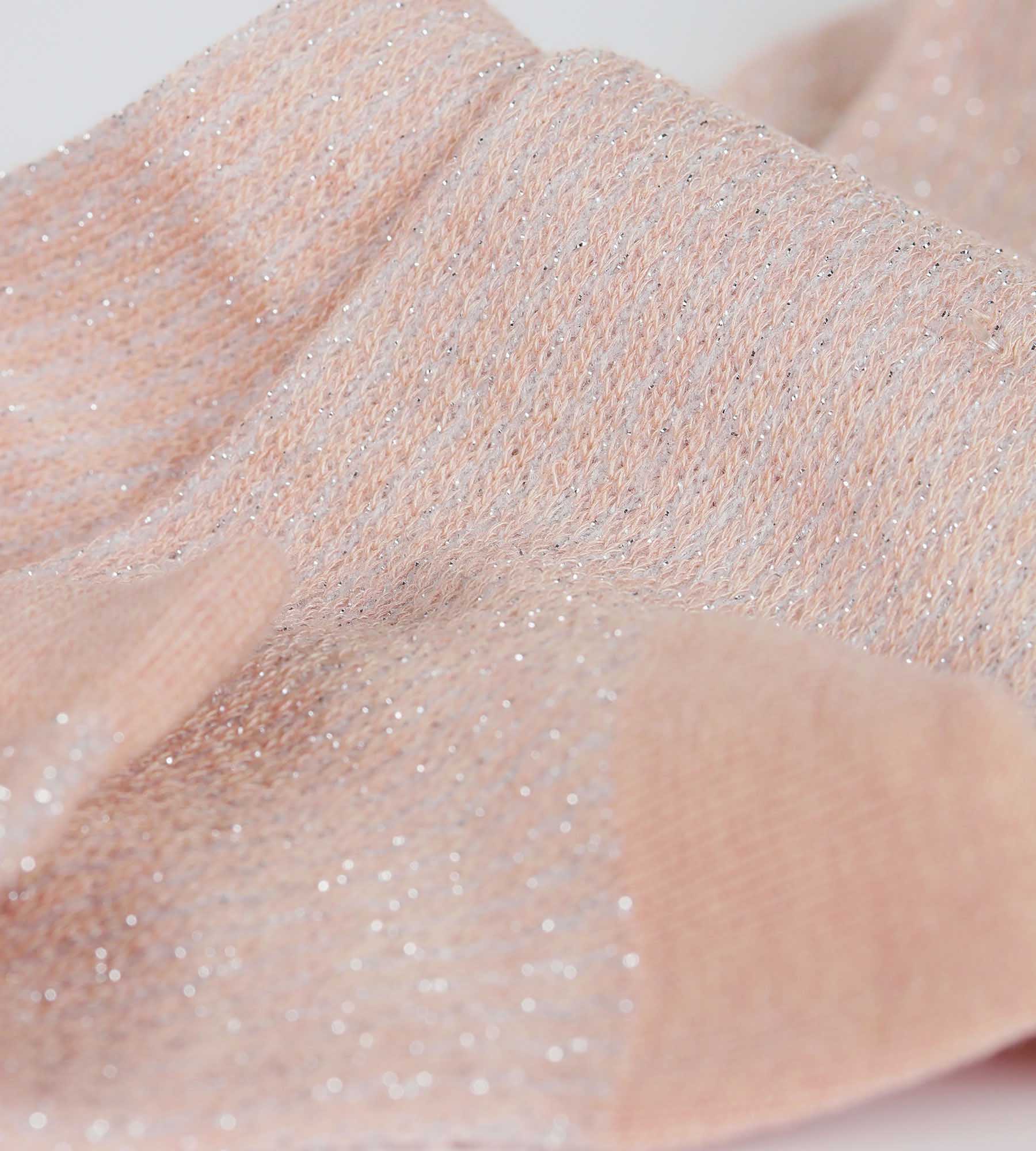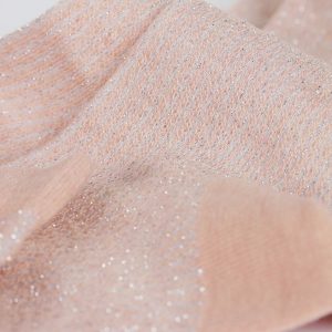 Finish your outfits with delicacy and sparkle thanks to DIM Mode women’s socks in blush pink knit and silver Lurex.