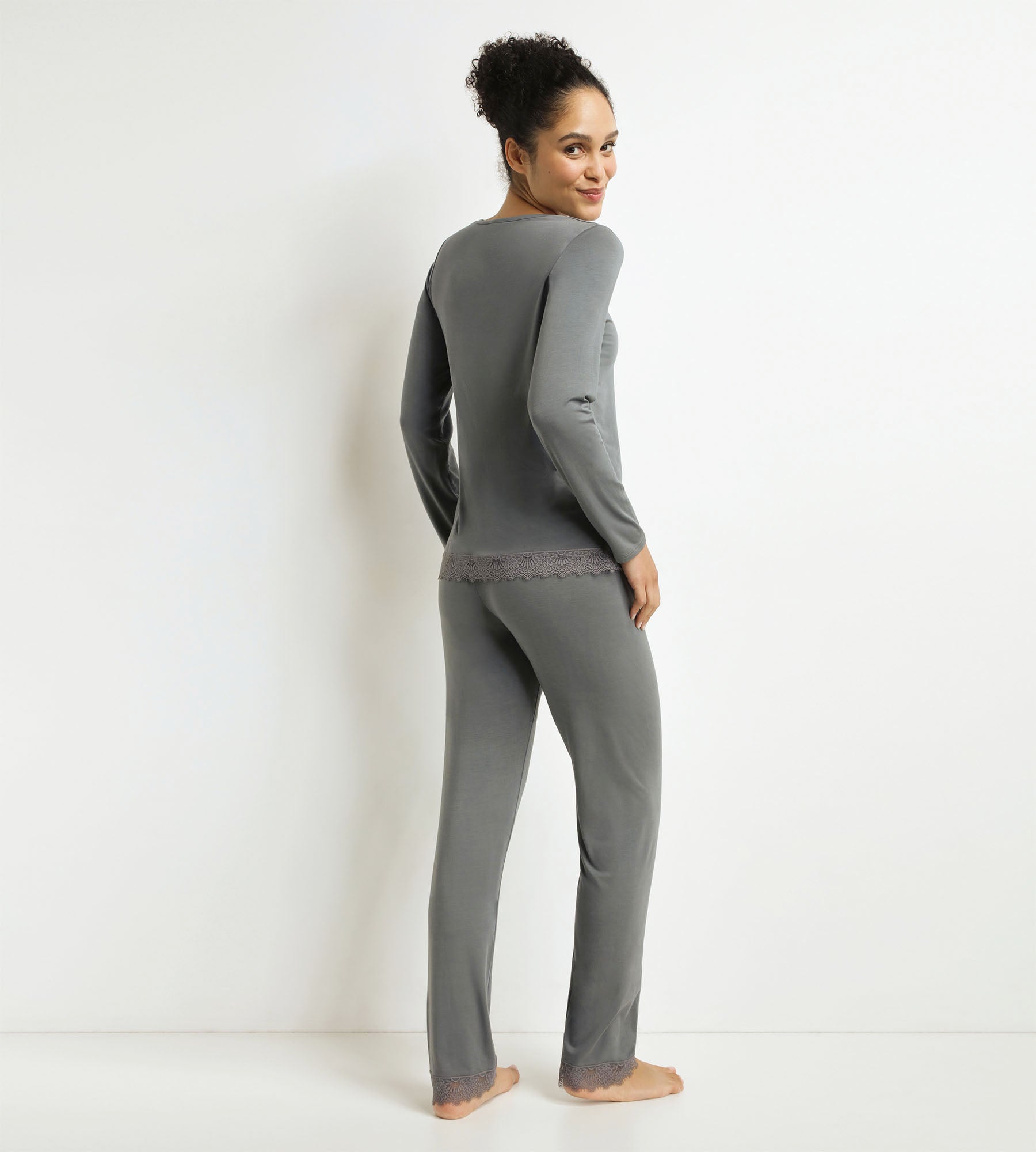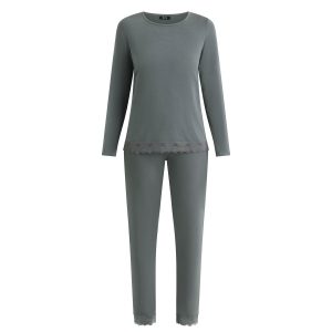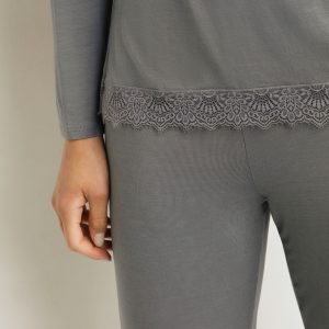 Sweetness and elegance united with the Dim Don’t Disturb women’s pyjama set in Grey modal cotton and lace.