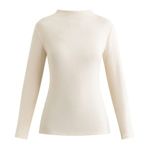 Women’s ribbed T-shirt with stand-up collar Beige Dim Thermal