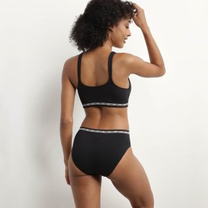 Thanks to its special comfort, seamless construction and even more stretchy ribbed microfibre , the Dim Icons Seamless black knickers can be worn every day, without any discomfort! We love the understated of its monochrome body and the minimalism of its Beige support band: your comfortable knickers are a timeless basic! Designed to be imperceptible under your clothes and on the skin, your dim women’s briefs will accompany you in any situation.