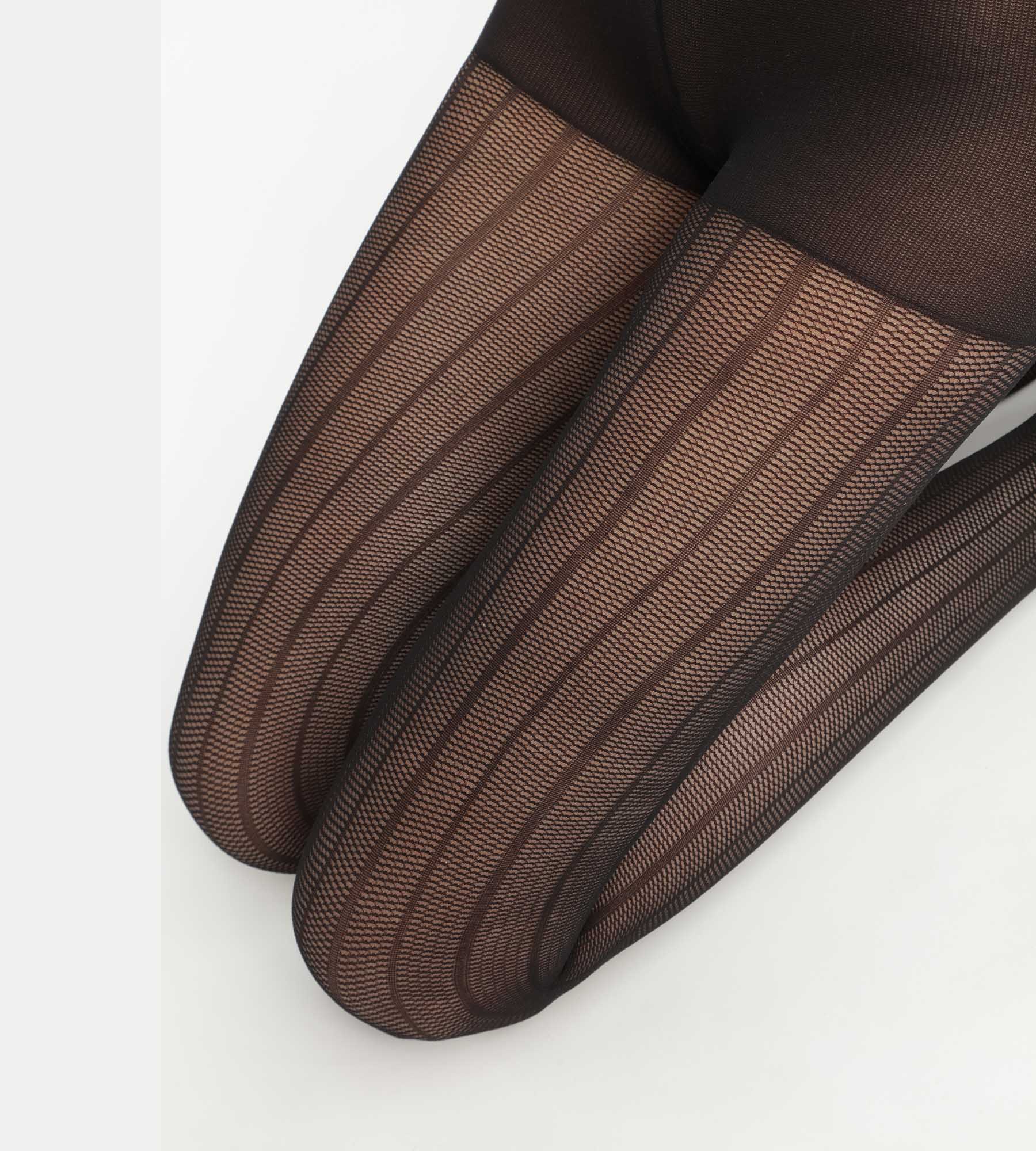 Liven up your outfits with these sheer tights in a black Dim Style linear pattern!