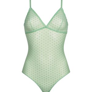 Women’s sheer tulle bodysuit in green with lurex polka dots Dim Shiny Mesh