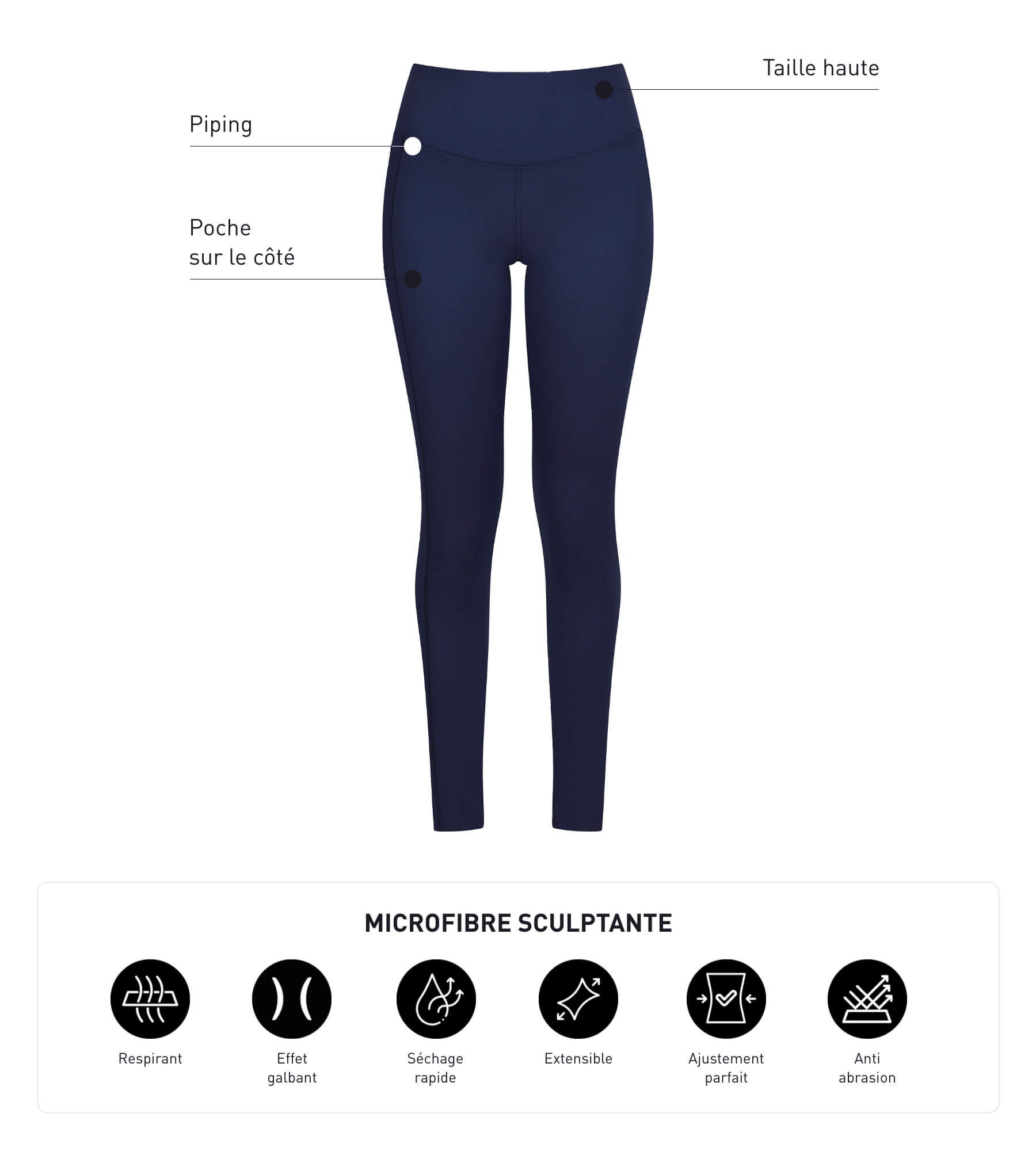 These Dim Move women’s short sports leggings offer a modern and equally technical alternative to classic long leggings. Its breathable, lightweight microfibre follows your movements without constraint, whether you’re doing yoga, training or walking. The 7/8 cut leaves the ankles free, while the high waist soberly refines the silhouette. Invisible and pleasant to wear, these women’s leggings are designed for active training sessions as well as for calmer moments.