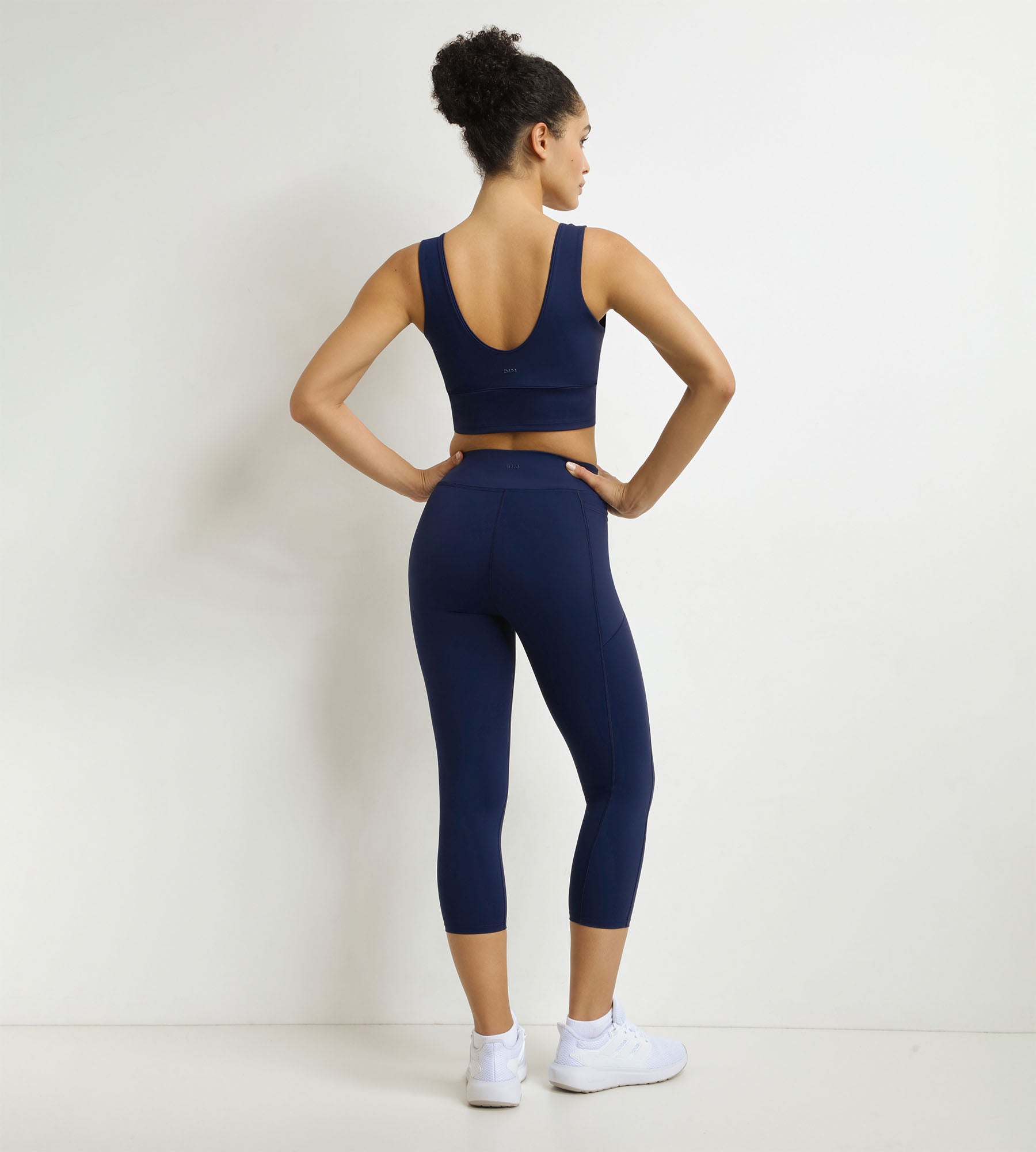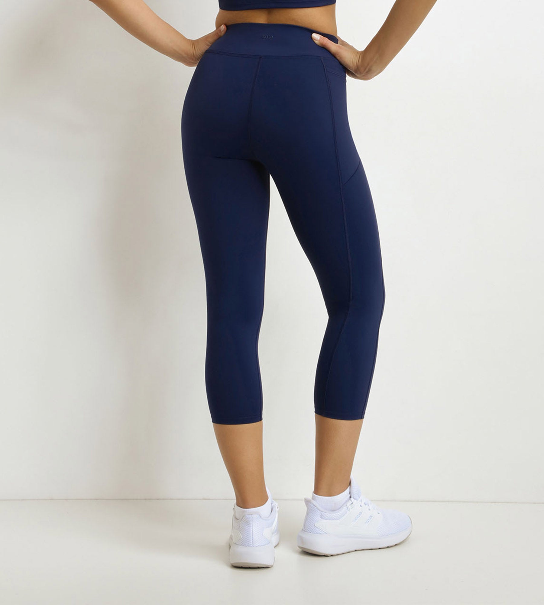 Swing with ease and comfort thanks to the Dim Move Midnight Blue microfiber women’s cropped sports leggings!