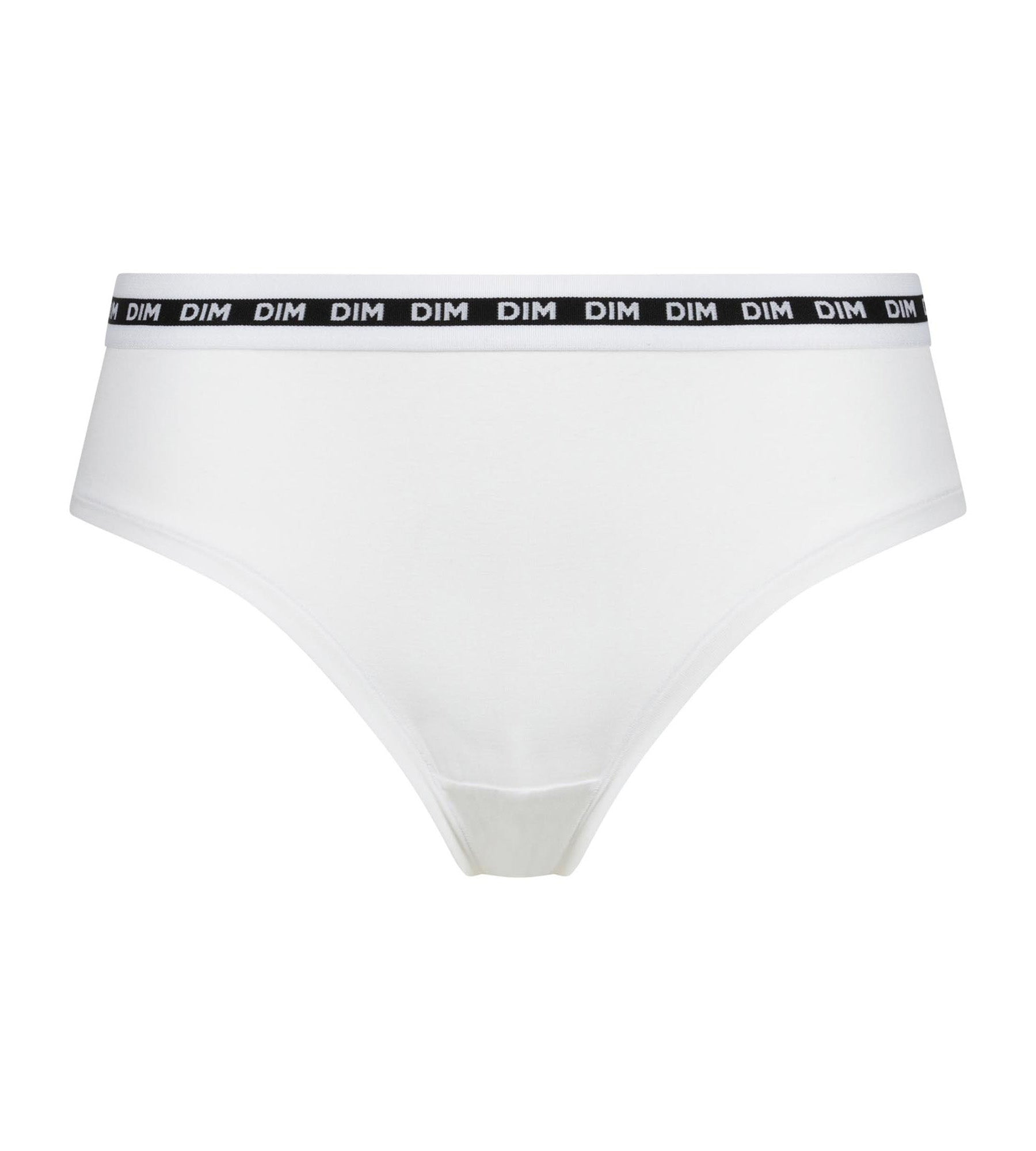 • The wide, contrasting waistband, à the signature Dim marquée