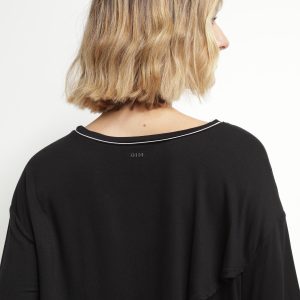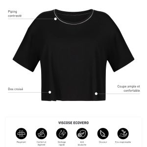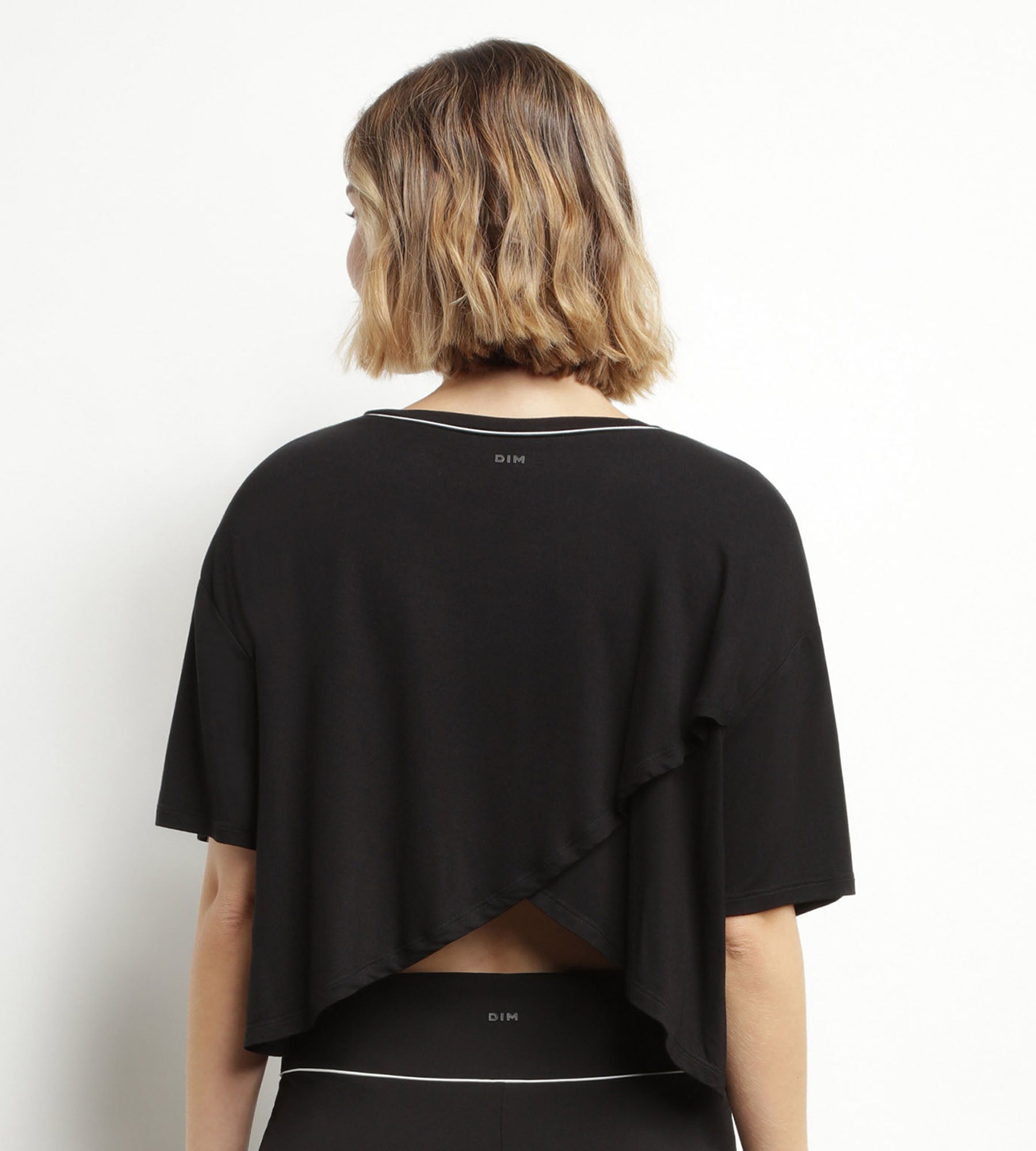 Designed to be worn as an overcoat for your sports bras, The Dim Move t-shirt puts the finishing touches to your sportswear with comfort! Made from a fluid viscose fabric, the Dim Move t-shirt dries quickly, lets the skin breathe and won’t pilling. We love the athletic details of this sportswear, with an open, double-breasted back, oversized shape and boat neckline highlighted with white braid.