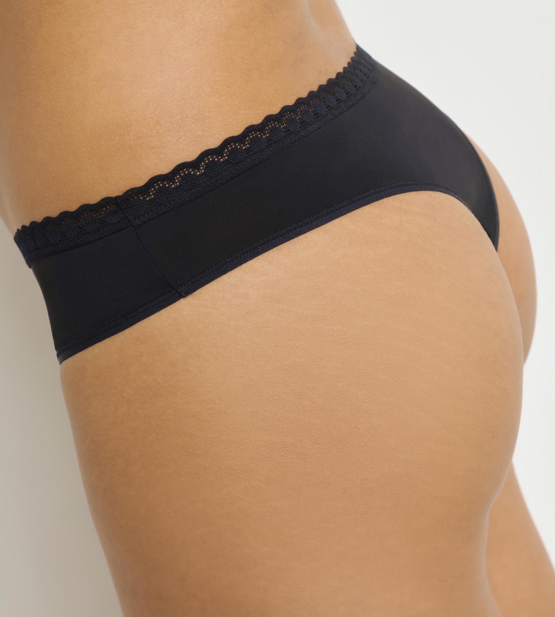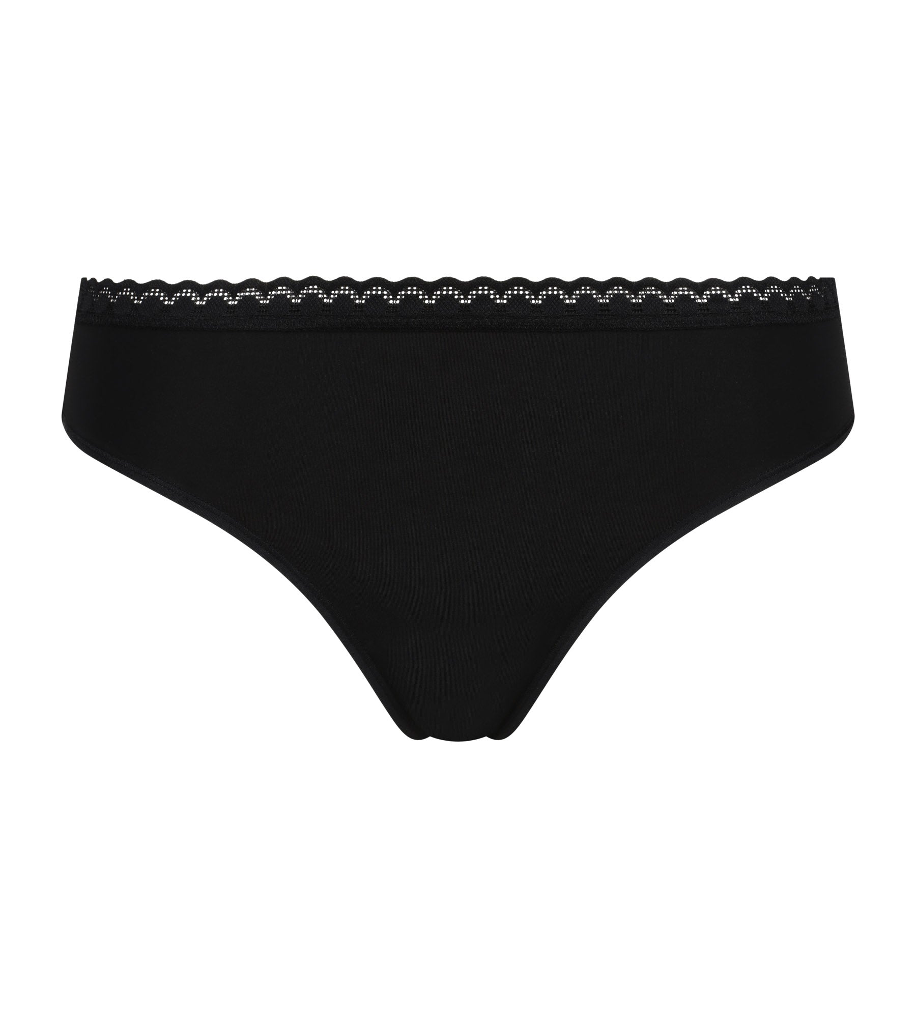 This Black Daily Micro thong for women is designed to slip discreetly under all your clothes. You’ll love the silky microfibre that follows your movements with ease, and the fine lace waistband that adds a subtle touch of style. Invisible under trousers or a fitted dress, this Daily Micro women’s thong is the practical, comfortable and pretty basic to have in your lingerie drawer.