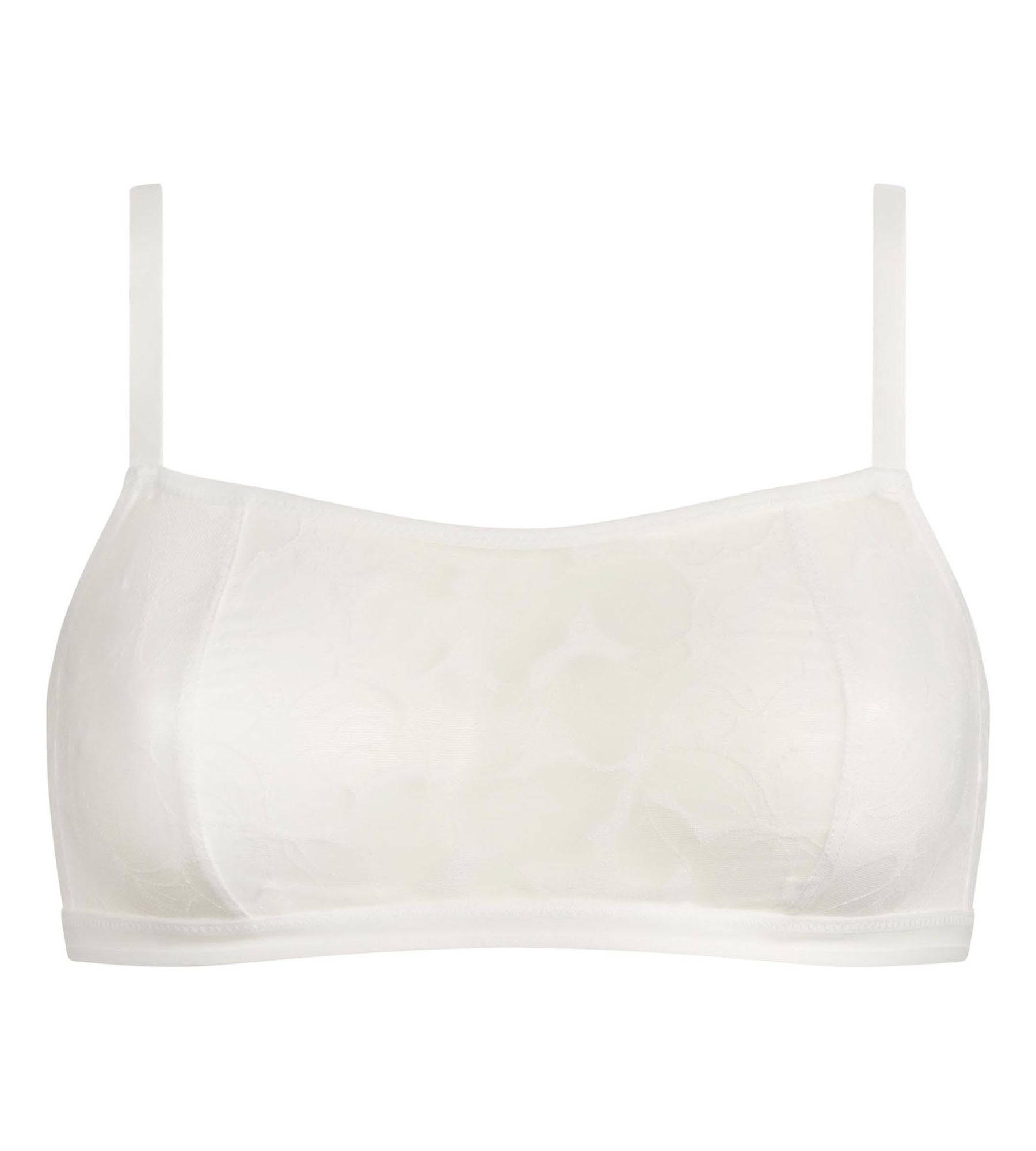 Show off a fresh, léger look with the Dim Bloom white floral lace bralette.