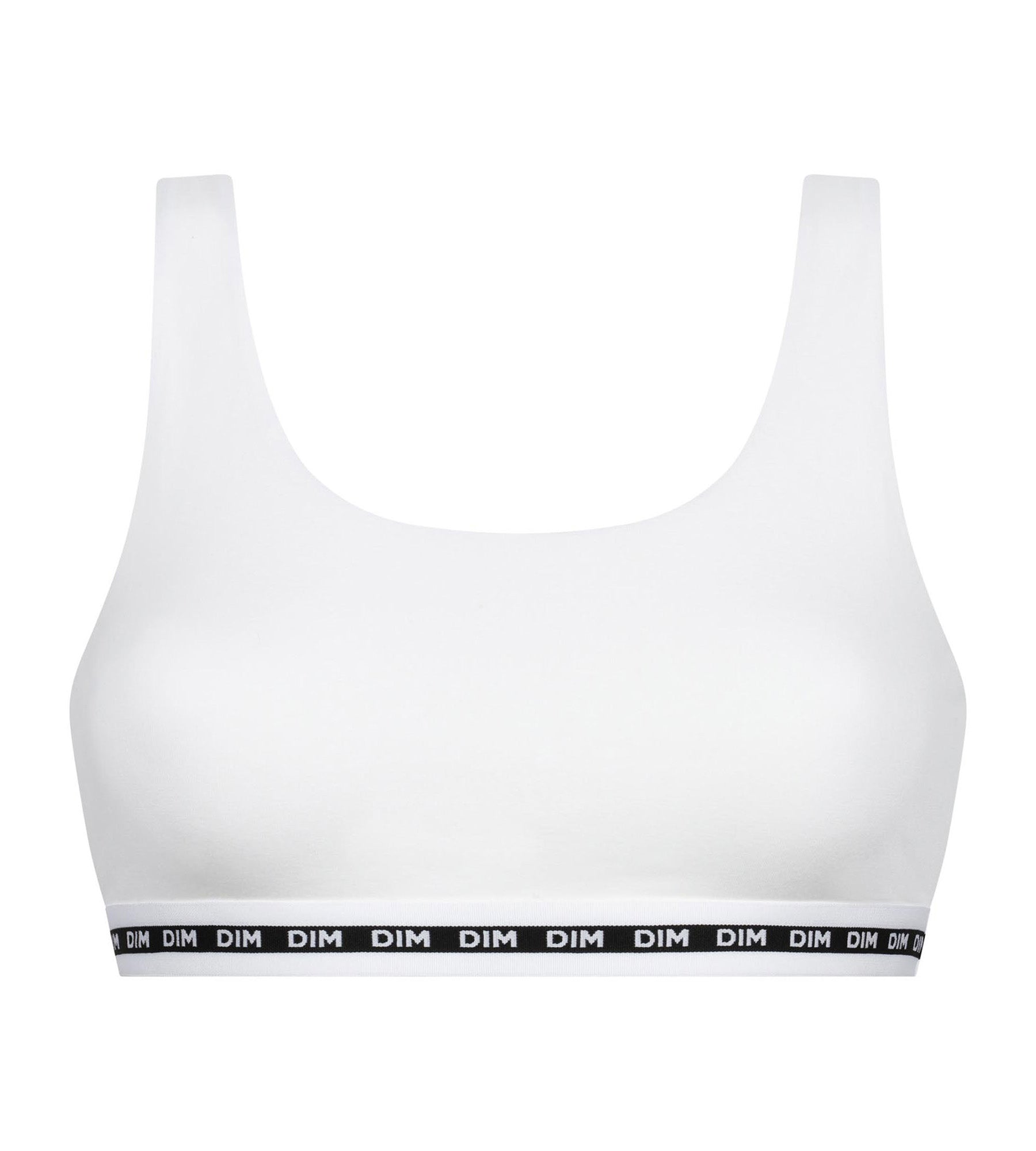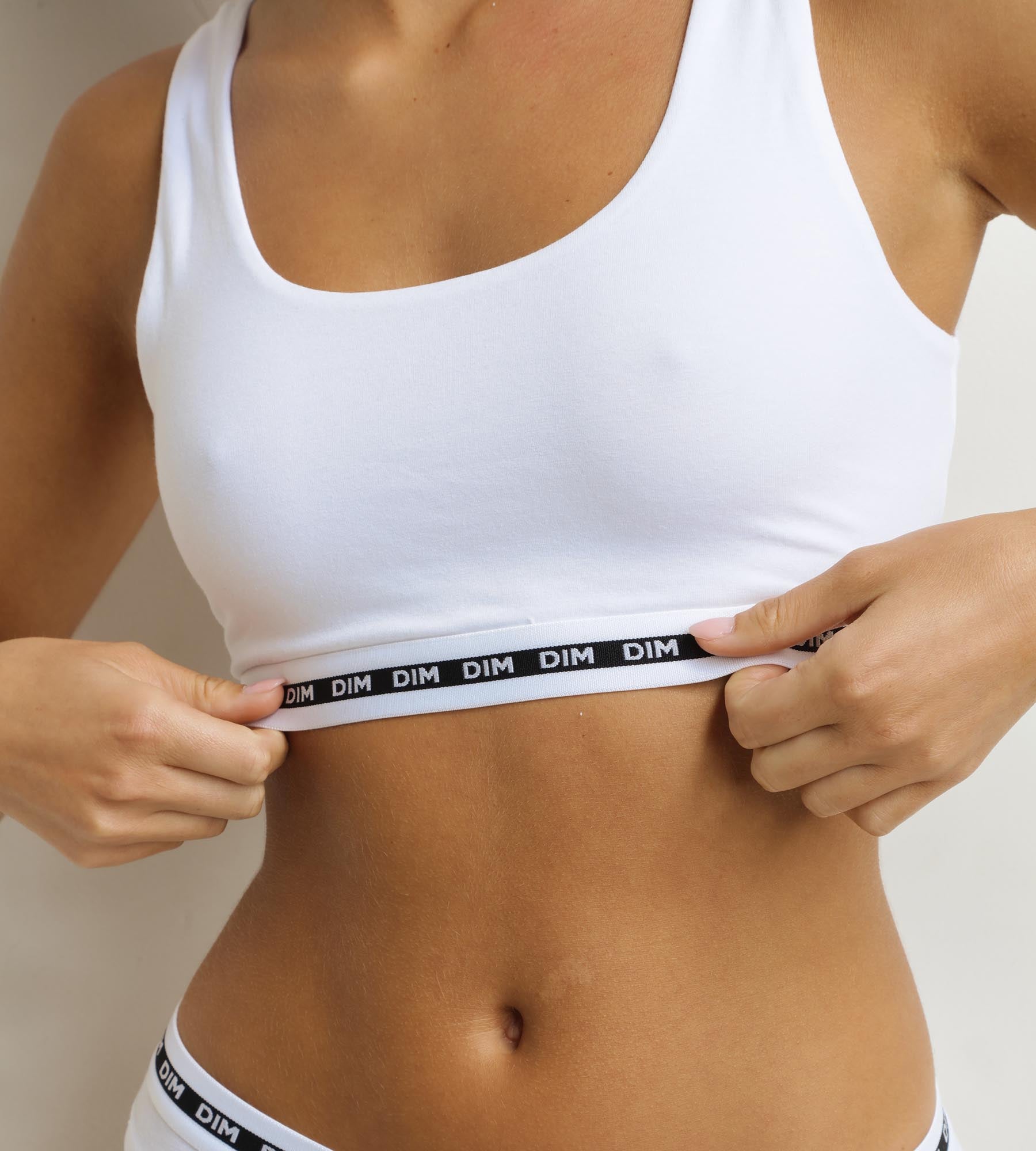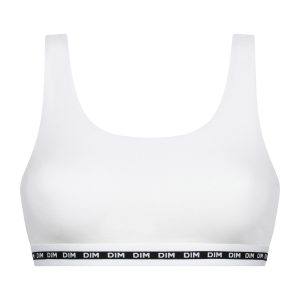 Ideal for lazy days or gentle activities, this Dim Icons women’s bra offers total wellbeing, thanks to its stretchy cotton modal knit and deeacute back. With its seamless, cupless shape, this bra naturally supports the bust and guarantees total mobility. The wide, plastic band with the Dim logo provides structure and gentle support for small and medium-sized breasts. With its minimalist design and versatile white hue, this Dim Icons bra is an easy-to-mix basic.