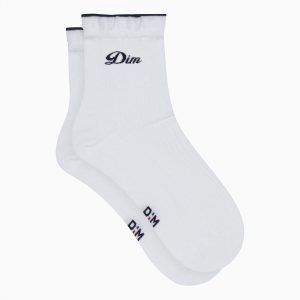 Women’s white cotton ankle socks with Madame Dim’s embroidered Dim signature